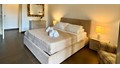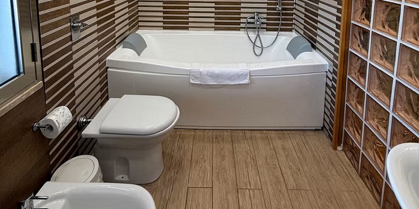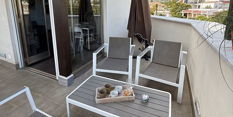 The Aiace Suite in Mondello near the Sea, approximately 130 square meters, is located just a few meters from Mondello's main square and its magnificent beach of fine sand. The apartment is equipped with every comfort, every room is air-conditioned, and can accommodate up to 6 people thanks to its two spacious bedrooms, one with a private bathroom and a whirlpool tub, and the other bathroom with a large shower. Here, you can experience a Mondello holiday in complete relaxation. This Palermo home also features a 120 square meter terrace with a sink and washing machine overlooking the Gulf of Mondello, where you can spend truly unique moments.